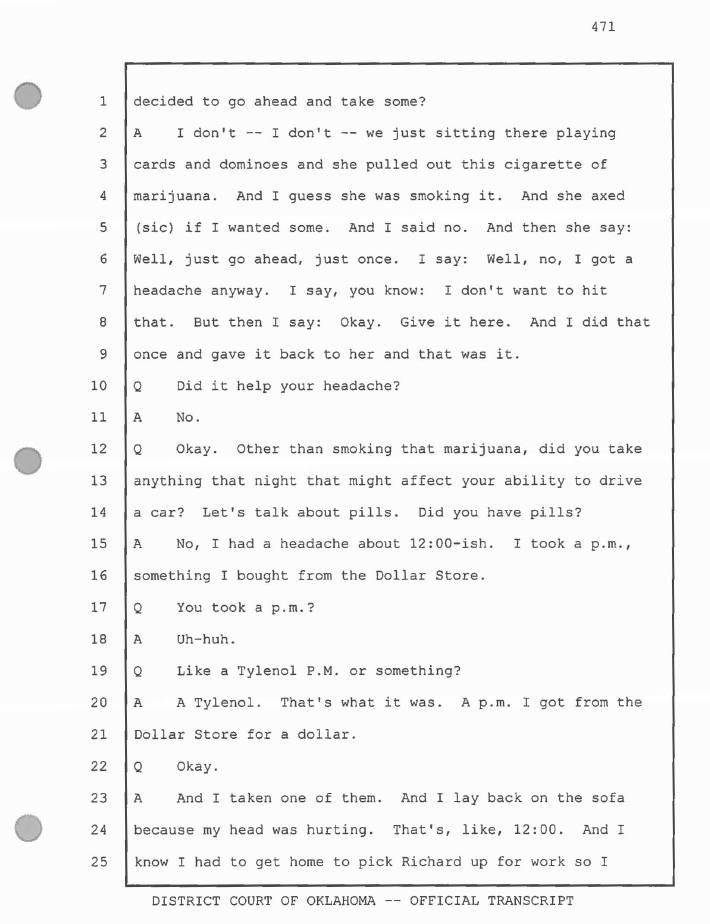 She admitted to smoking two joints of marijuana 90 minutes prior.