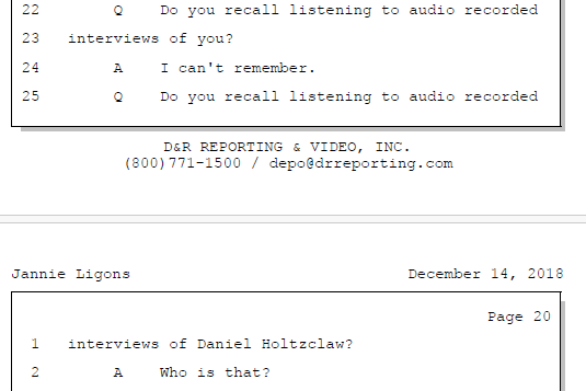 After Daniel’s trial, Ligons sued him and the city. At her civil deposition, she did not recognize the name “Daniel Holtzclaw” and could not recall what she had done the previous day—even though she had attended another accuser’s deposition. These documented lapses raise substantial questions regarding her long-term memory and reliability.
